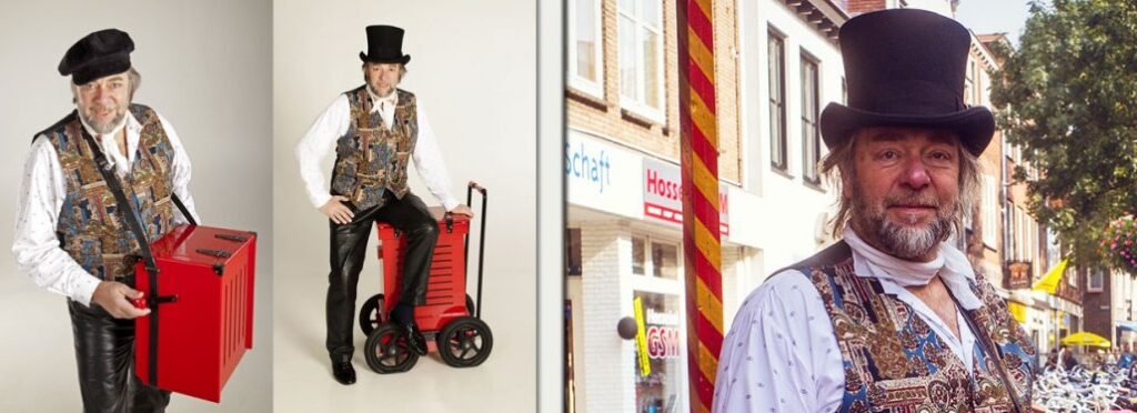 De nostalgische uitstraling van het orgeltje wordt versterkt door een orgelman in passende kledij.